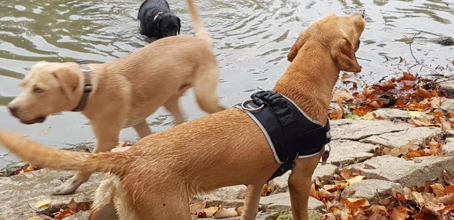 Selbstverständlich sind unsere Hunde auch viel draußen im Garten, oder wir machen ausgiebige Spaziergänge durch unseren schönen Wald.