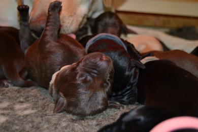 Amber hat am 17.06.2015 ihre wunderschönen Welpen geboren,es war eine vorbildliche Geburt.Unsere Maus hat es ganz toll gemeistert.Unsere Welpen haben die Farbe choco und schwarz.Mama und Welpis sind wohlauf,nun heißt es erstmal erholen für Mama und Kinder .Essen schlafen und wachsen,wir freuen uns auf eine sehr aufregende und spannende Zeit.